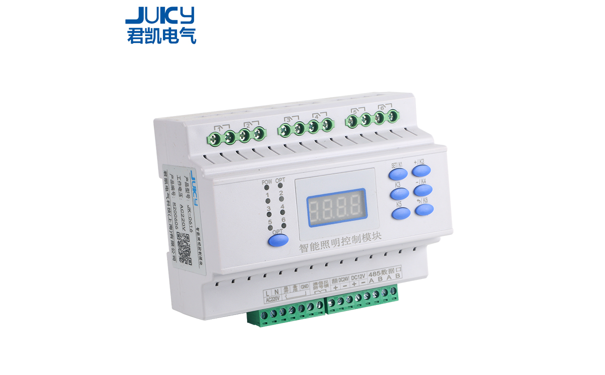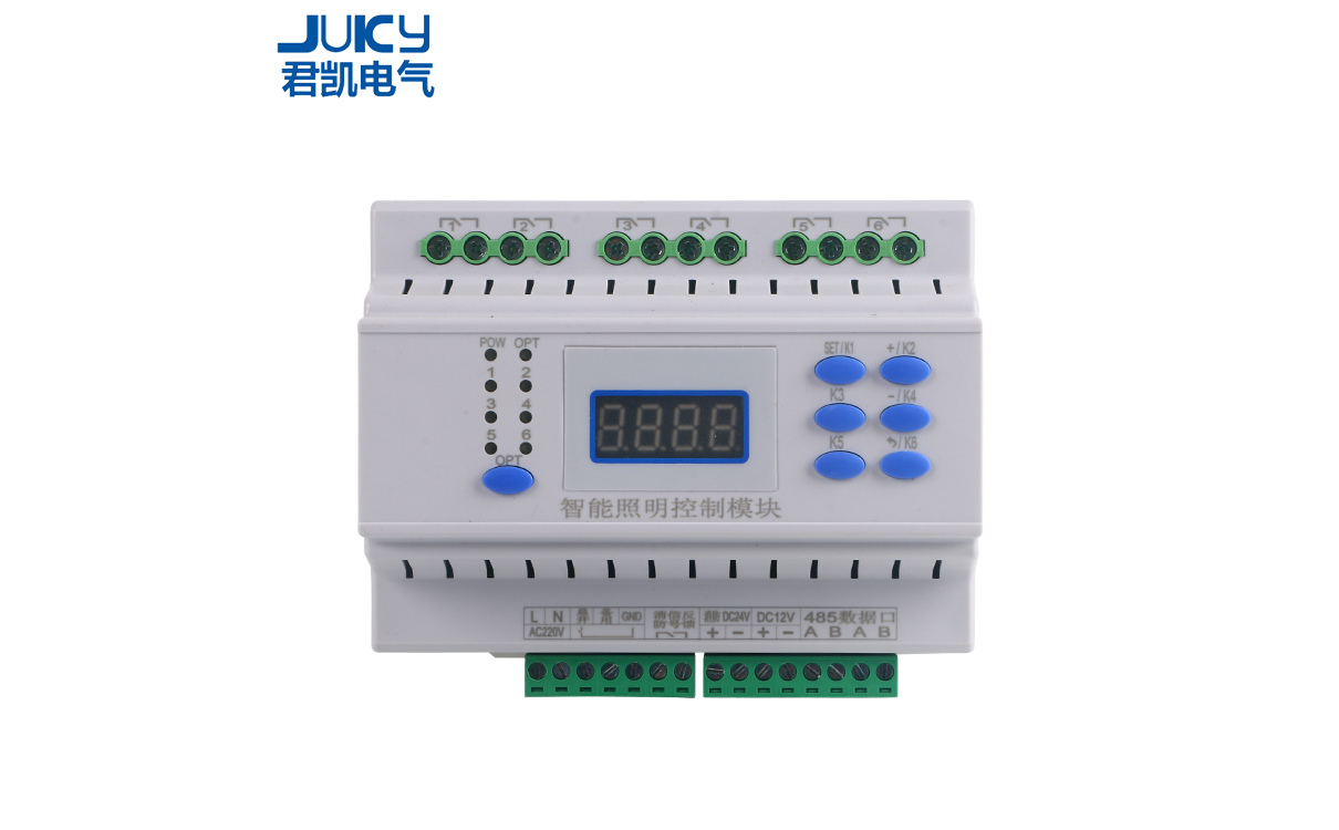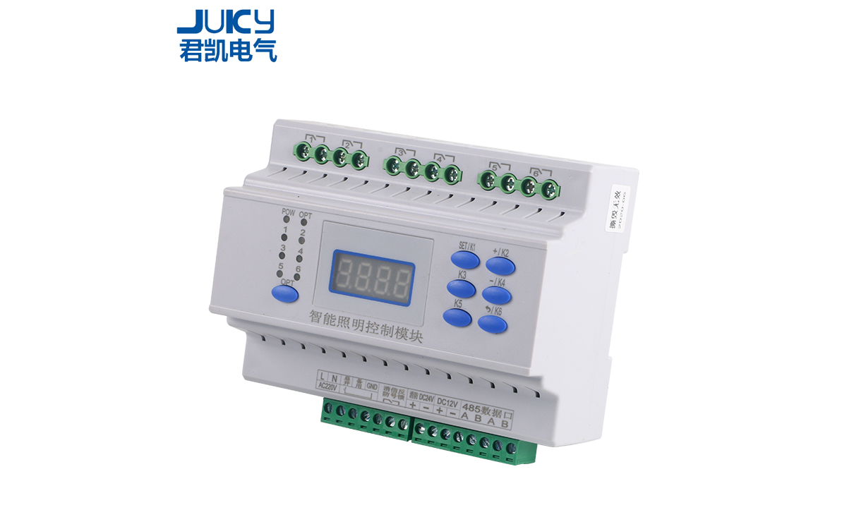 智能照明控制系統由開關模塊、調光模塊、場景控制面板、 時鐘控制器、干節點輸入模塊、紅外傳感器、光照度傳感器、 GPR模塊、系統網關等設備組成,將上述各種具備獨立控制功能模塊的通訊聯接起來組成一個控制網絡。